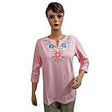 Baby Pink Cotton Tunic Kurti for Women's Full Sleeve Embroidered Fashion Top (Apparel)