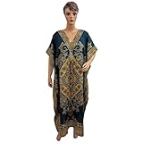 Dark Blue Ethnic Print Satin Crepe Caftans Kaftans Womens Nighty Wear Maxi Dress (Apparel)