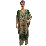 Moroccan Caftans for Womens Green Ethnic Print Satin Crepe Lounge Wear Kaftan (Apparel)