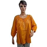 Womens Blouse Floral Embroidered Orange Off Shoulder Cotton Tunic Top Large Size (Apparel)